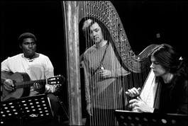 From left to right : French jazz musicians Joelle LEANDRE (double...