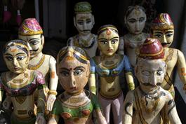 INDIA. Rajasthan. Udaipur. Puppets seller.