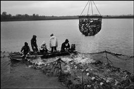 USA. Alabama. Uniontown. On a farm lake, catfish is harvested...