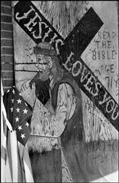 USA. Alabama. Montgomery. A fundamentalist Christian displays...
