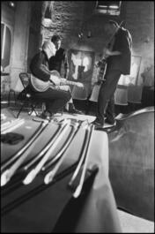 In the foreground, French jazz musician Gerard MARAIS (guitars),...