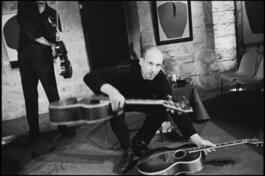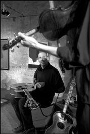 Facing the camera, Danish jazz musician Hasse POULSEN (guitar),...