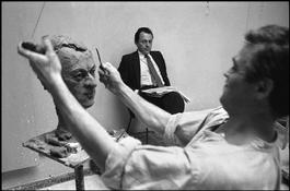 FRANCE. Paris. Michel ROCARD posing for sculptor Daniel DRUET.