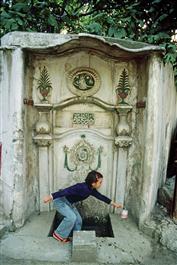 TURKEY. Man waiting for wine in a wineshop at Galatasaray. 1989....