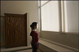 SPAIN,Barcelona, Portrait of Eleonora with distorsion.