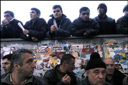GEORGIA. Tbilisi. November 14, 2003. Police blocking access to...