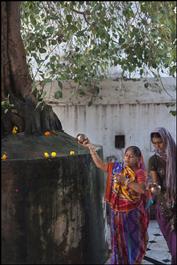 INDIA. Gujarat State. Ahmedabad. Morning puja in the temple of...