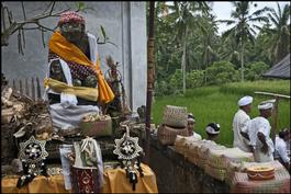 INDONESIA. BALI. Shamanic protection in a rice field? Decoration...
