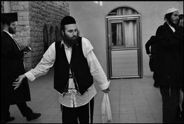 ISRAEL. Meron. April. An orthodox pilgrim is in dialogue with...