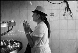 ISRAEL. Tiberias. April. A woman pilgrim prays and lights candles...