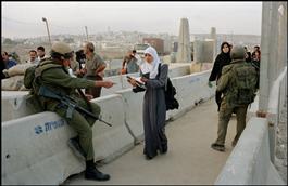 Qalindya checkpoint toward Ramallah. Israeli woman from WomenWatch....