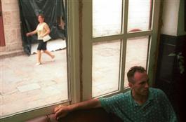 REPUBLIC OF MACEDONIA. Skopje. June 2001. Macedonian walks by...