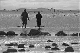 Northern Ireland. Down. Strangford Lough. Wardens go to lay...