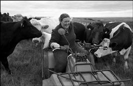 Northern Ireland. Antrim. Tenant farmer Sandra Hunter feeding...