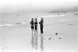 G.B. WALES. Porth Dinllaen. Tourists shrimp fishing and reading....