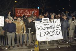 G.B. ENGLAND. London. Wapping. Protest over printing press layoffs...