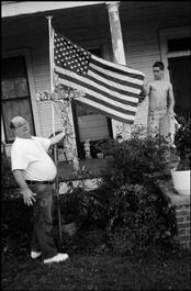 USA. GEORGIA. Blairsville. A Bible in hand and the American flag...
