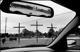 USA. Alabama. Three Christian crosses stand by a highway. 2003....