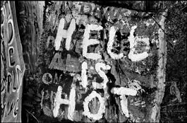 USA. Alabama. Prattville. "Hell is Hot" says the sign hand painted...