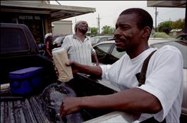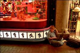 USA. Louisiana. New Orleans. Youngster has plugged in his laptop...
