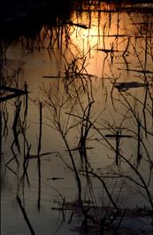 USA. Louisiana. Near Gibson. Reflections in the still black...