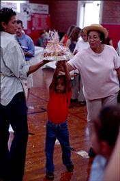 USA. Louisiana. Grand Coteau. A contestant in the cakewalk...