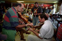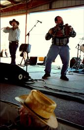 USA. Louisiana. Eunice. Cajun fiddler and accordionist play...