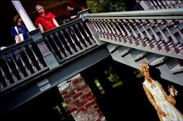 USA. Louisiana. Vacherie. Laura Plantation. Visitors stand...