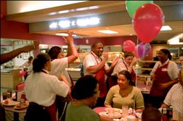 USA. Louisiana. Opelousas. Birthday celebrations for a diner...