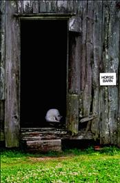 USA. Louisiana. Vacherie. Laura Plantation. White cat inside...