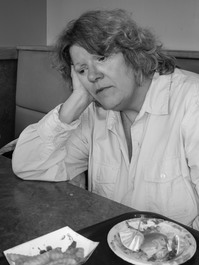 California. July 2020. Santa Rosa. Tired woman at a Diner.