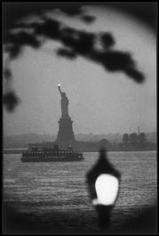 USA. New York. 1958. Statue of Liberty at night with lamp post....