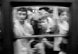 USA. New York City. 1991. Escalators at the World Trade Center....