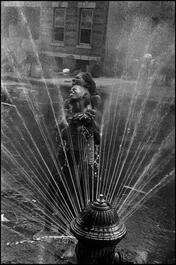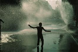 USA. New York City. 1983. Children cool off with open fire hydrants...