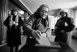 LATVIA. Riga. Going to vote in independence referendum. 78% of...