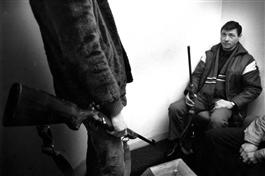 LITHUANIA. Vilnius. 1991. Volunteer guards in the Parliament...