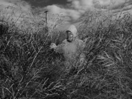 USA. Detroit, MI. 2012. Howard in the asparagus patch of a community...