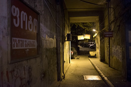 GEORGIA. Tbilisi. September 2017. Passageway off Rustavelli Avenue....