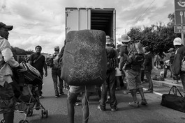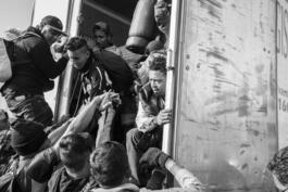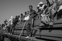 Migrants hitching ride.