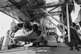 Migrants boarding transport...