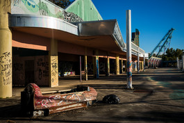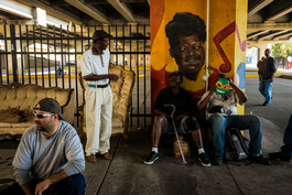 USA. New Orleans, LA. 2018. Beneath Ponchartrian Expressway overpass....