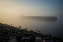 USA. New Orleans, LA. 2018. Mississippi River. Early morning...
