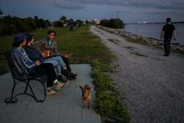 USA. New Orleans, LA. 2018. Lower 9th Ward. Levee at dusk.