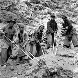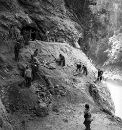Burma. Yunan to Burma Railway. WW II. Nam-ting River. Workers...