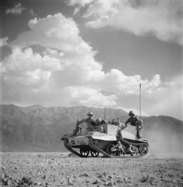 IRAN. Near Kavzin. British bren gun carriers on the road to Kazvin....