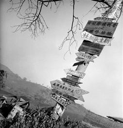 BURMA. Kyuhkok. Signs in different languages nailed to a tree...