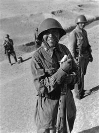 IRAN. WW2. Near Kazvin. A Soviet soldier at the meeting of the...