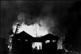 Burma. Rangoon. World War II. Night scene in the suburbs where...