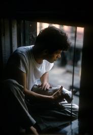 USA. New York City. 1959. Ray BREMSER on the fire escape of Allen...
