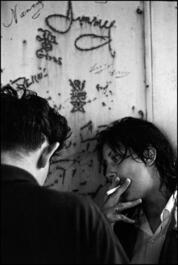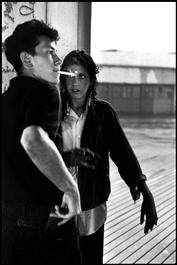 USA. New York City. 1959. Brooklyn Gang. Teenager couple smoking...